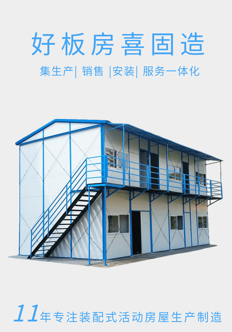 2.便捷的拆卸和组装,可用于紧急情形:房屋可多次拆卸和组装以反复用到。安装时只需简便的工具即可用于紧急状况。一般人可以安装20-每天30平方米,六人可以在两天内完成3k×10Kstandard活动板房。