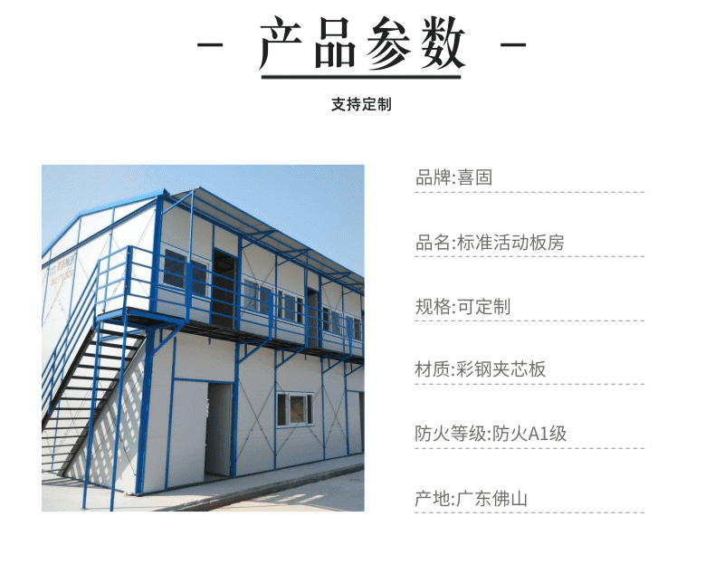 喜固k标准预制房屋以轻钢为框架,夹芯板为围护材质,标准模数系列用于空间组合。彩钢预制房屋组件通过螺栓连结,这是一种新概念环保经济的彩钢预制件。